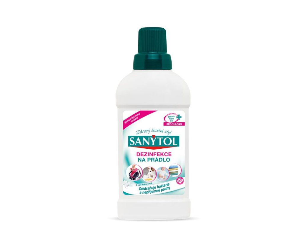 Prádlo vyprané při nízké teplotě není úplně zbaveno mikrobů. Právě ty jsou původci nepříjemného zápachu, nemocí i podráždění kůže. Pouze praní na 90 °C zničí 100 % mikrobů v prádle.Dezinfekce na prádlo SANYTOL ničí bakterie, candida albicans, lidský koronavirus 229 E i virus chřipky H1N1, a to dokonce i při nízkých teplotách. Jeho jedinečné složení účinně odstraní neodbytný zápach a přitom respektuje vlákna na bílém i barevném prádle. Jeho svěží vůně dodává příjemný pocit čistoty.