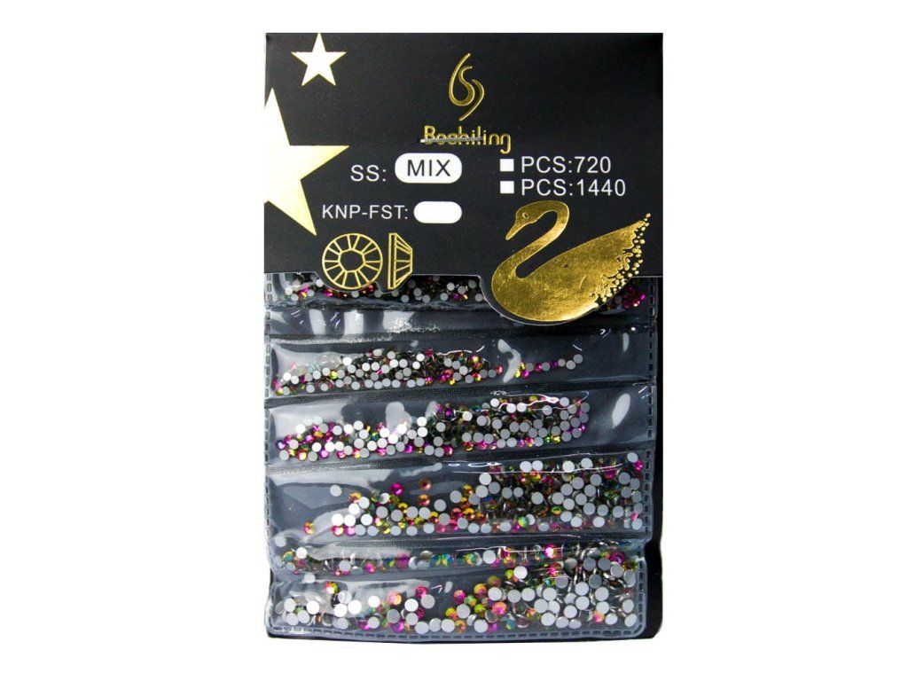 Kamínky na nehty sada C-2 růžové - 1440 ks, mix velikostí