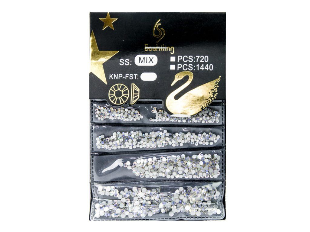 Kamínky na nehty sada C-5 čiré - 1440 ks, mix velikostí