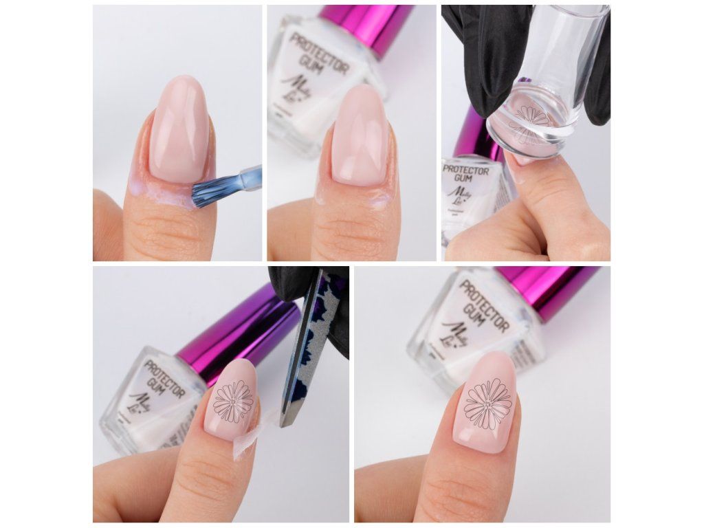Vhodné pro použití okolo nehtového lůžka při zdobení nehtů, razítkování nehtů, ombre zdobení houbičkou, watermarble, třpytky a jakýkoli lak na nehty. Stačí nanést, nechat uschnout a po lakování nebo zdobení sloupnout.
