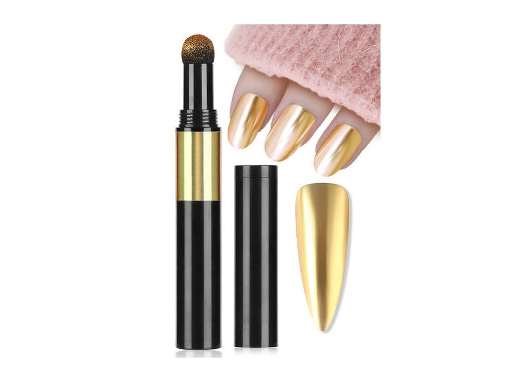 - otevřete pero s pigmentem a jemně přitlačte houbičku k nehtu, aby se uvolnilo správné množství pigmentu
