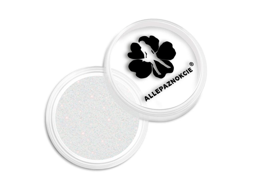 Třpytky na nehty v krásné bílé barvě. Šroubovací uzávěr. Možné aplikovat do laku i UV gelu. Možné použít i na zdobení těla nebo vlasů..