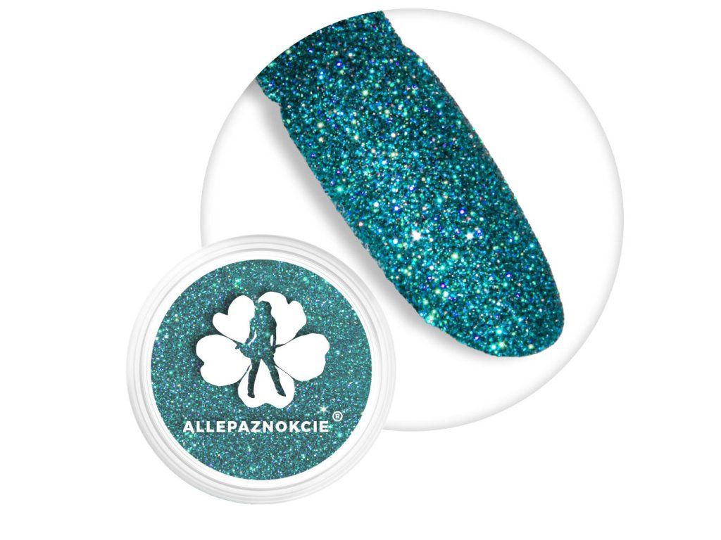 Třpytky na nehty v krásné tyrkysové barvě. Šroubovací uzávěr. Možné aplikovat do laku i UV gelu. Možné použít i na zdobení těla nebo vlasů.