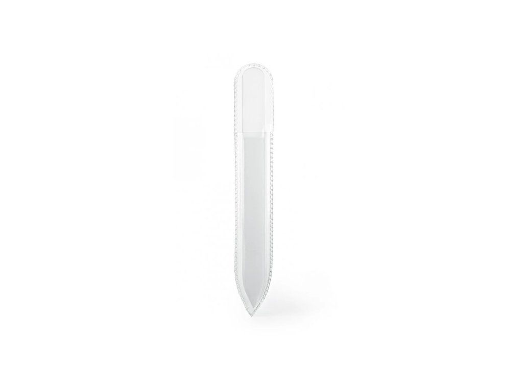 Skleněný pilník na nehty délky 140mm,tloušťky 2mm. Včetně PVC obalu.