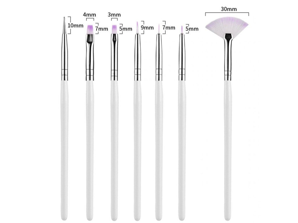 Štětce na nehty sada 7 ks bílé