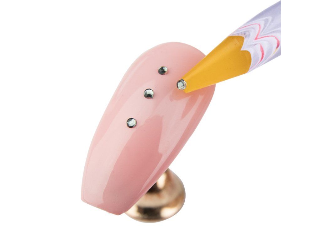 Praktická pomůcka pro nanášení drobných ozdob (jako jsou např.kamínky) v podobě voskové tužky. Ozdoby velmi snadno přilnou k tužce, což umožňuje jejich posun a umístění na nehet. Tužka se skládá z papíru, vícevrstvého obalu a voskového jádra. Před použitím je třeba tužku ořezat.